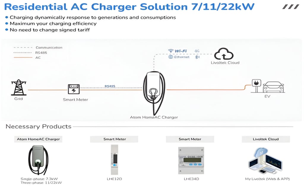Our partnership extends to the future of mobility with LIVOLTEK’s smart EV charging stations. Ranging from home AC chargers